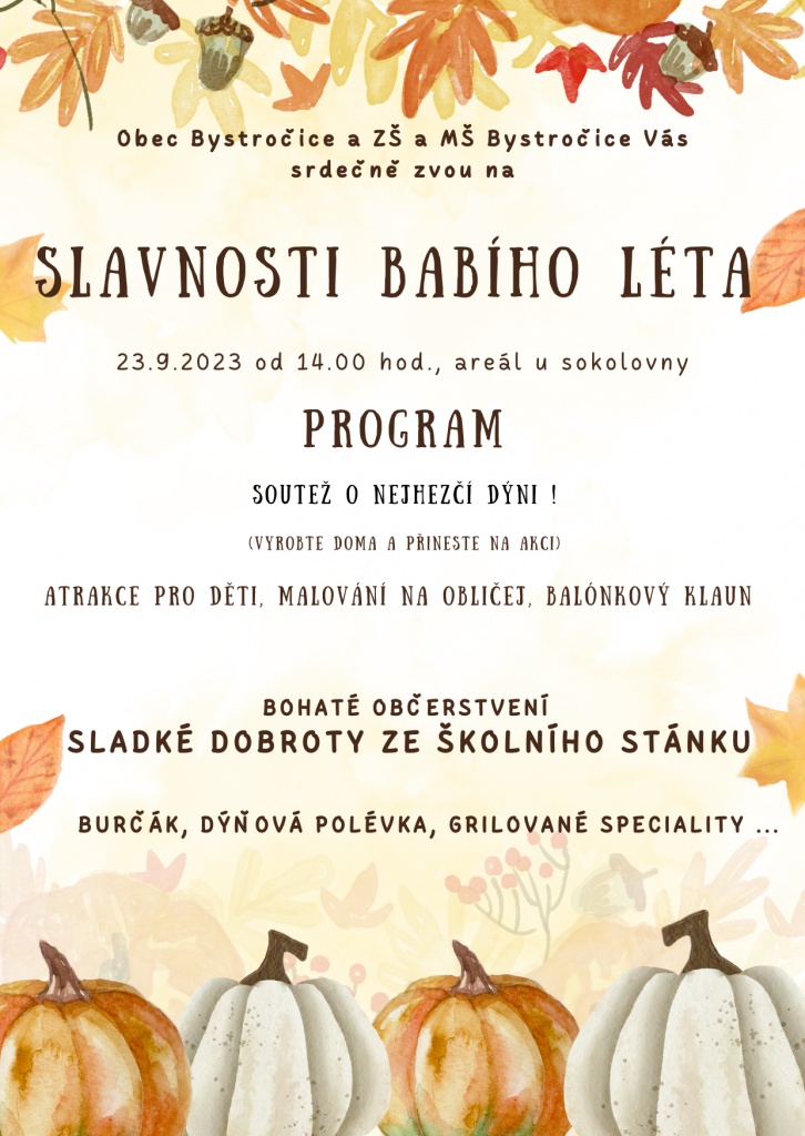 ZŠ a MŠ Bystročice a Obec Bystročice Vás srdečně zvou na rozloučení s létem!